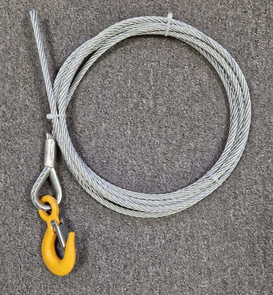 Предлагаем трос (канат) стальной оцинкованный для лебёдок ручных и электрических собственного производства. На одном конце каната запрессован коуш с крюком тип 320А, второй конец каната «свободный». При производстве используется только грузовой стальной оцинкованный канат 6*19+ОС 1960Н/мм2. Все канаты протестированы на собственном испытательном стенде.