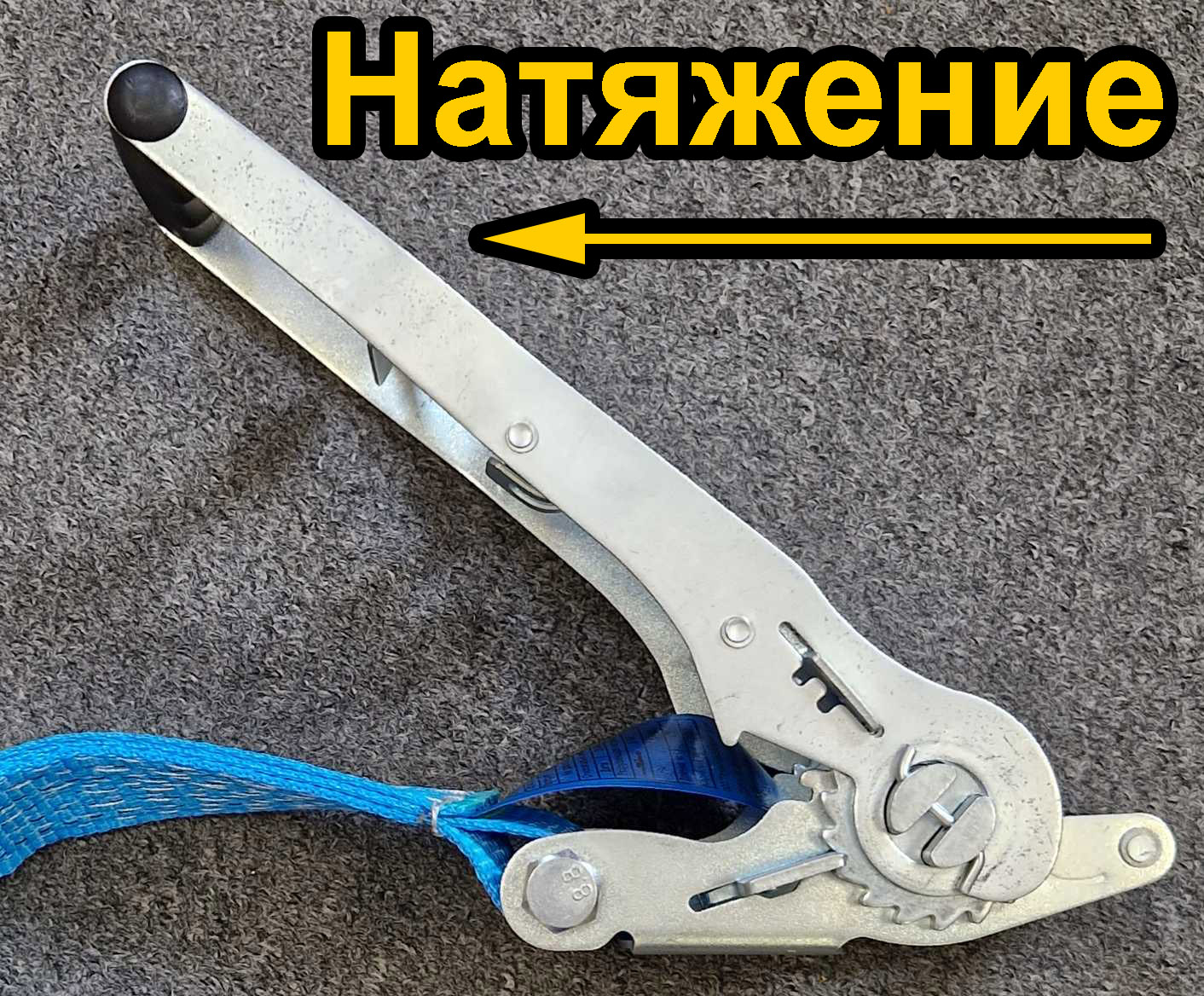 "из двух частей" - состоит из короткой части оснащенной двойным крюком и храповым механизмом и длинной части с двойным крюком на одном конце;