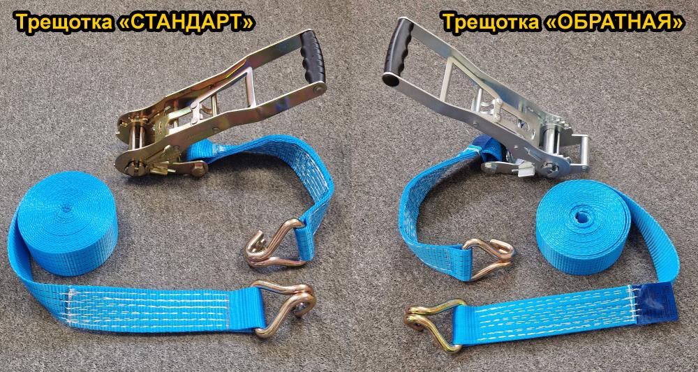 Ремни отличаются по ширине ленты (для ремня 5т ширина ленты 50мм) и храпового механизма, а так же по разрушающим нагрузкам. Все ремни маркируются именно по разрушающей нагрузке, так как при расчете какие и сколько крепежных элементов (ремни или цепи крепления грузов) необходимо приметить, моделируется экстренная (аварийная) ситуация при которой груз должен остаться закрепленный, не сдвинуться и остаться целым.